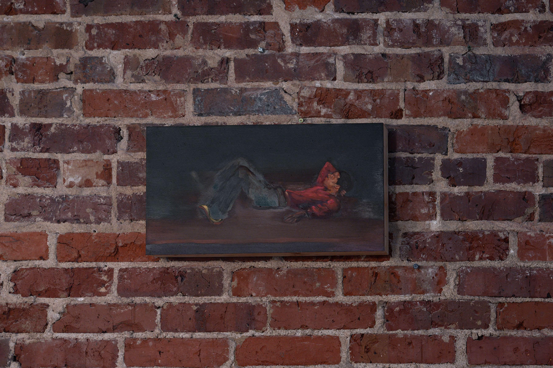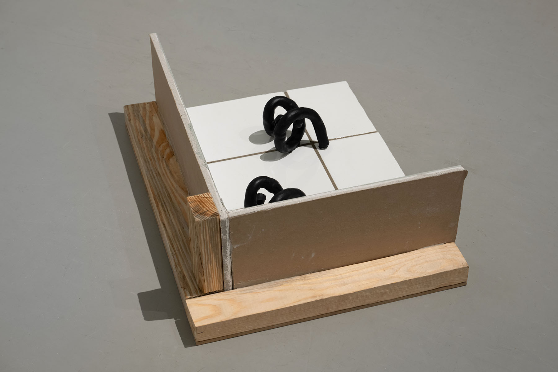 This exhibition serves as a spatially engaged play on language; the stage contemplates black as it is used in a great expanse of meaning. Through the seasons, black cultures have been the root of U.S popular culture. Black is exhaust, reduction, concentration, energy, opacity, depth, emptiness, absence, and grievance, as my words cannot hold. The fallen man is depicted, the concentration of carbon is captured, the projection of stillness plastered.”
